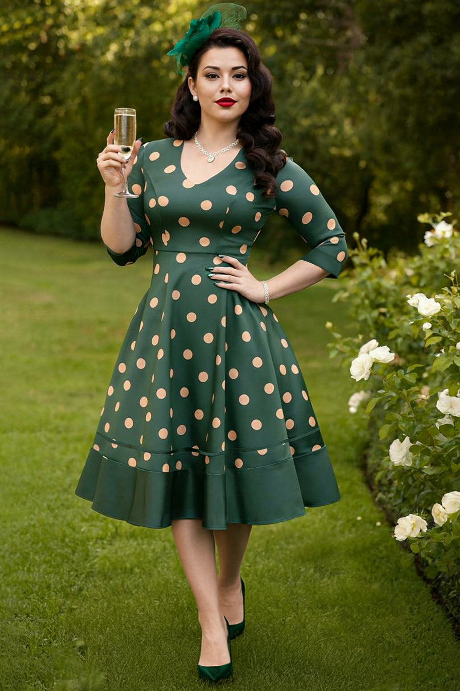 Our Maria dress is a show-stopping statement of vintage glamour. It features a flattering fitted bodice with a horseshoe neckline and elegant three-quarter sleeves. The full flared skirt is accentuated by a contrasting hem that adds a touch of drama and sophistication. Perfectly balancing playful charm and timeless elegance, this dress also includes a concealed back zip for a seamless fit and hidden side pockets for your essentials. Pair it with one of our petticoats to elevate the volume and create the ultimate retro silhouette.