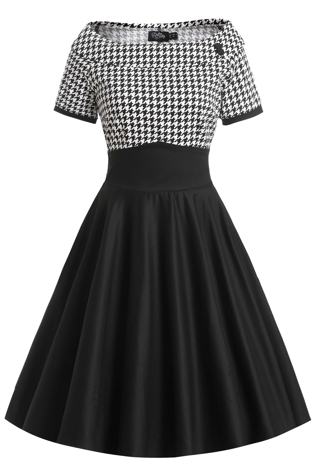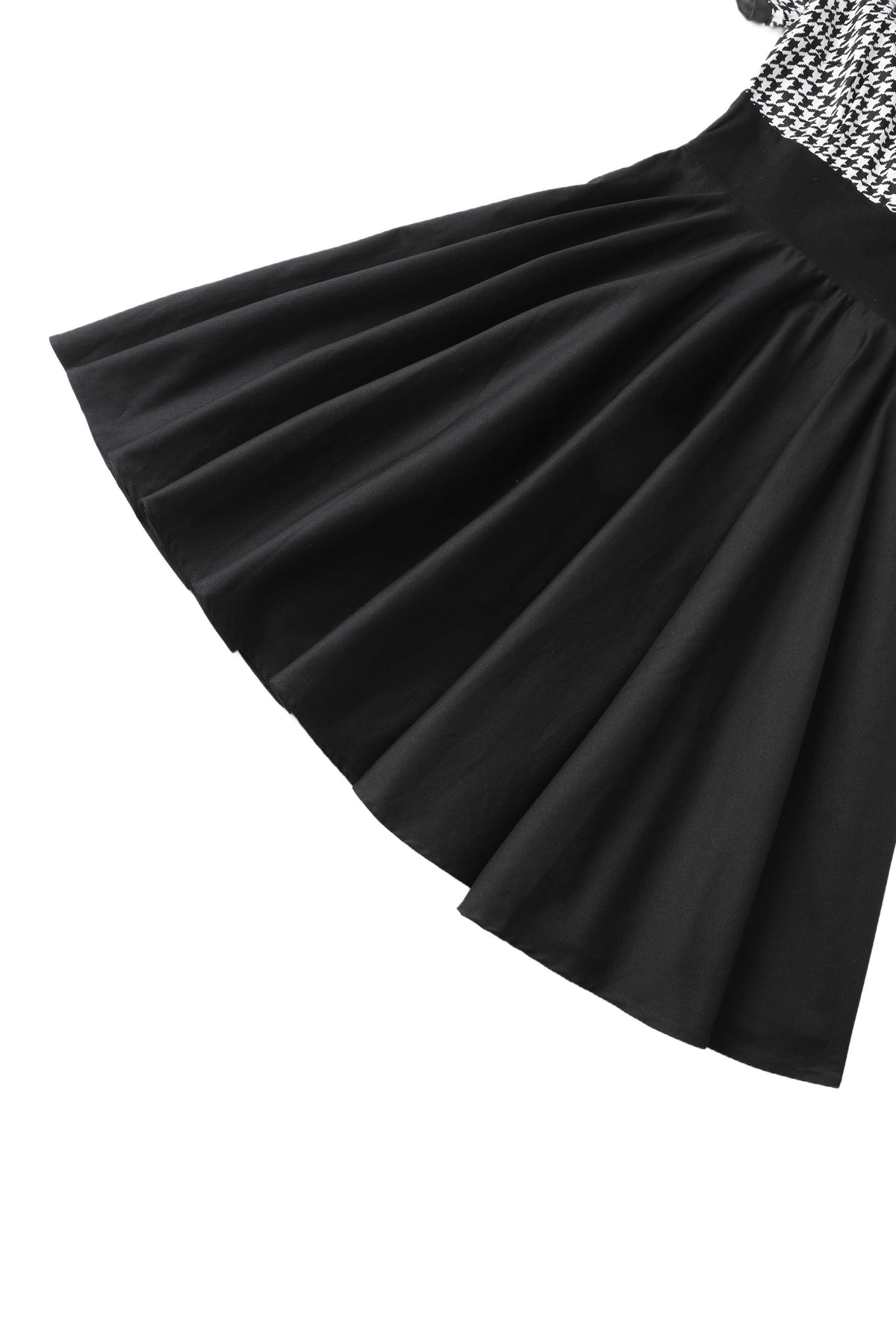 Close up view of Darlene Houndstooth Roll Collar Circle Dress