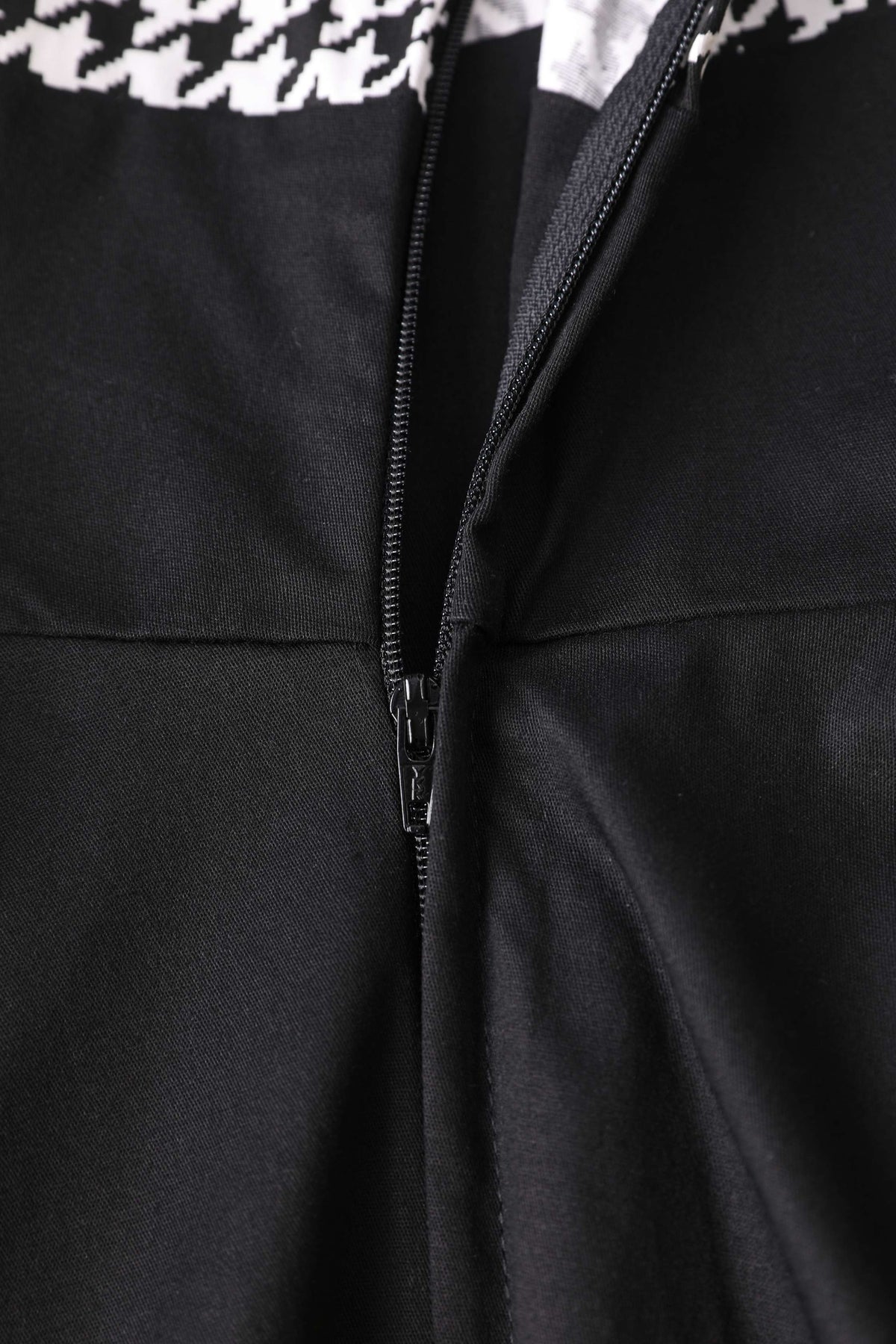 Zipper detail of Darlene Houndstooth Roll Collar Circle Dress