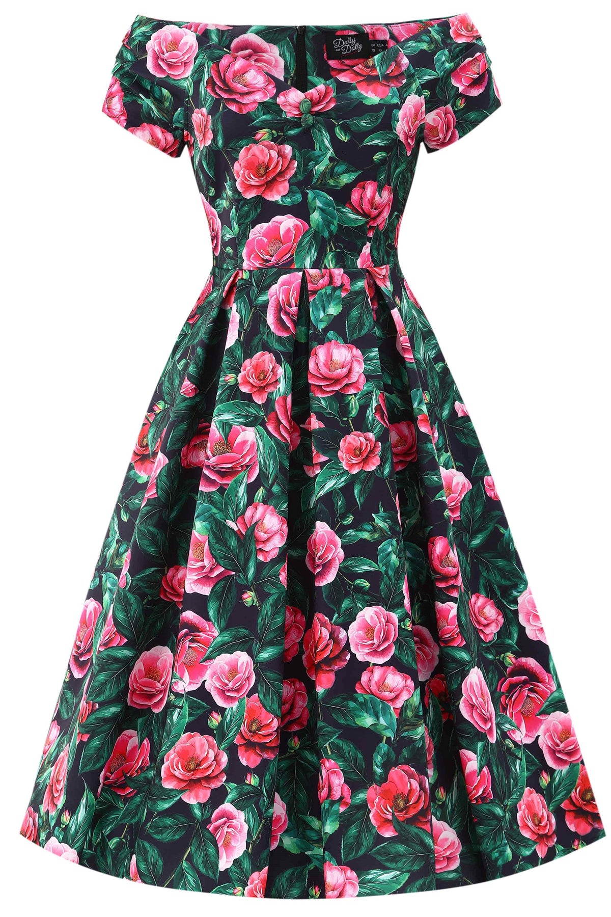 Turn heads and steal the spotlight with our stunning Lily dress! The off-shoulder neckline, complete with chic matching buttons, is designed to highlight your collarbone and add a touch of effortless glamour. The fitted bodice cinches at the waist, creating a jaw-dropping hourglass figure, while the full-circle skirt flows with every movement, giving you the freedom to dance the night away. Whether you're attending a garden party or simply embracing your vintage style, the Lily dress guarantees all eyes will be on you. Oh, and did we mention—it has pockets?! Perfect for stashing your essentials while you shine.