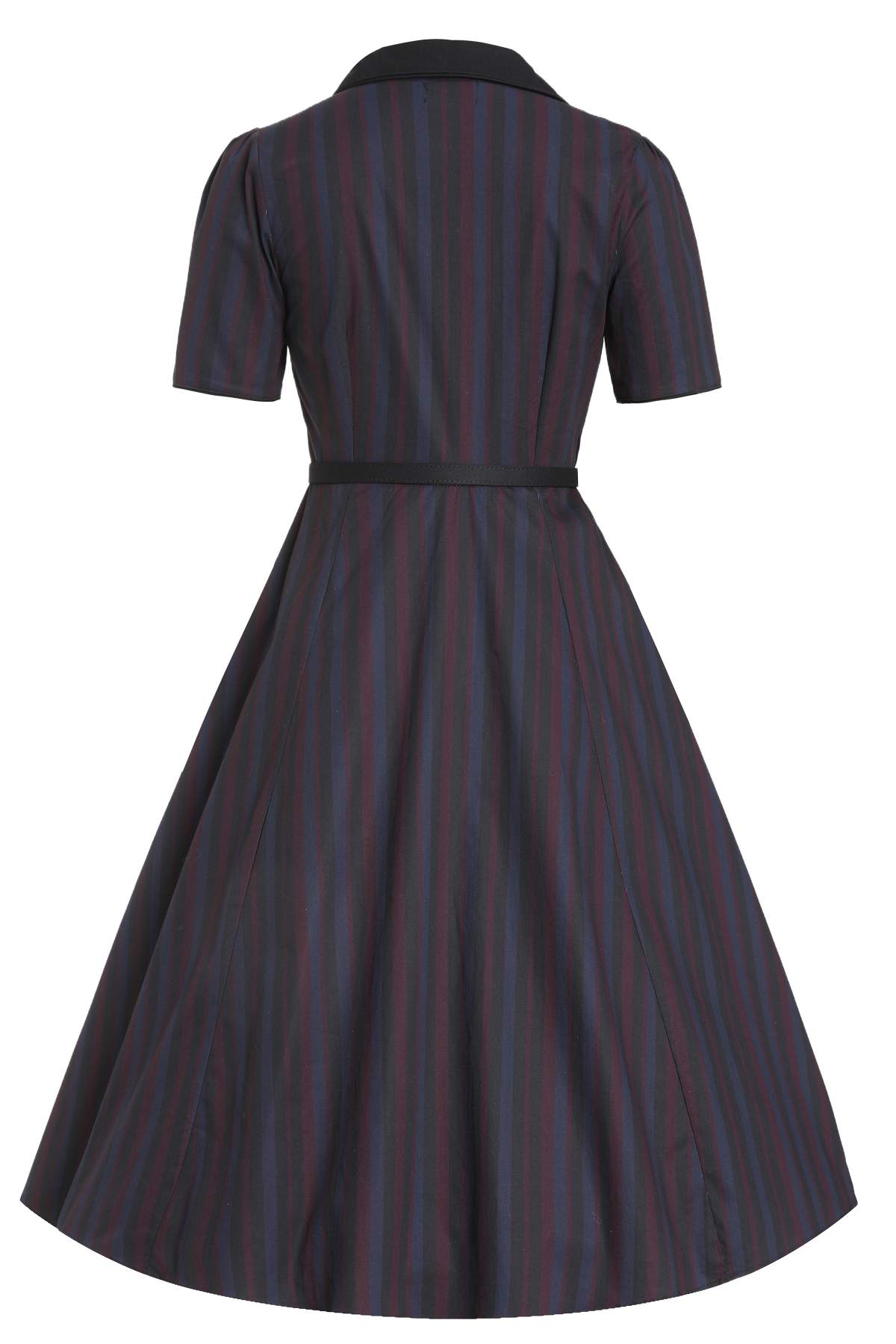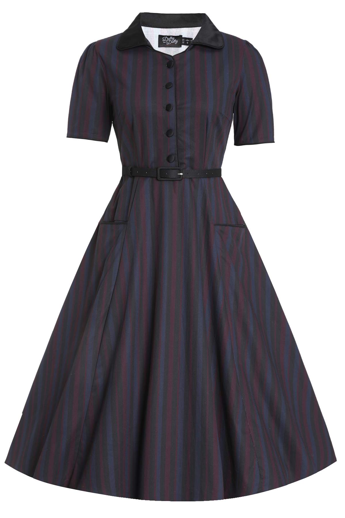 Step into the timeless elegance of the 50s with our Mabel midi shirt dress. This dress is a true classic, with its retro collared bodice, short sleeves, and a dreamy mid-calf skirt that flows beautifully. Subtle piping on the sleeves and front gives it that special 50s flair. The flattering belt defines your waist, and the concealed side zip ensures a smooth fit.