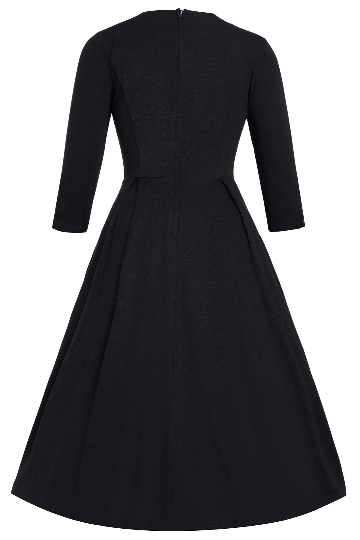 Our Beatrix dress is a timeless wardrobe essential. Designed with a classic round neckline, a flattering fitted bodice, and elegant three-quarter sleeves, it captures effortless sophistication. The signature flared skirt creates a beautiful silhouette, while the hidden side pockets are roomy enough for your essentials. Finished with a concealed back zip for a smooth fit, this beauty transitions easily from casual days to dressed-up evenings. Add one of our soft and cosy petticoats for that extra touch of vintage flair.