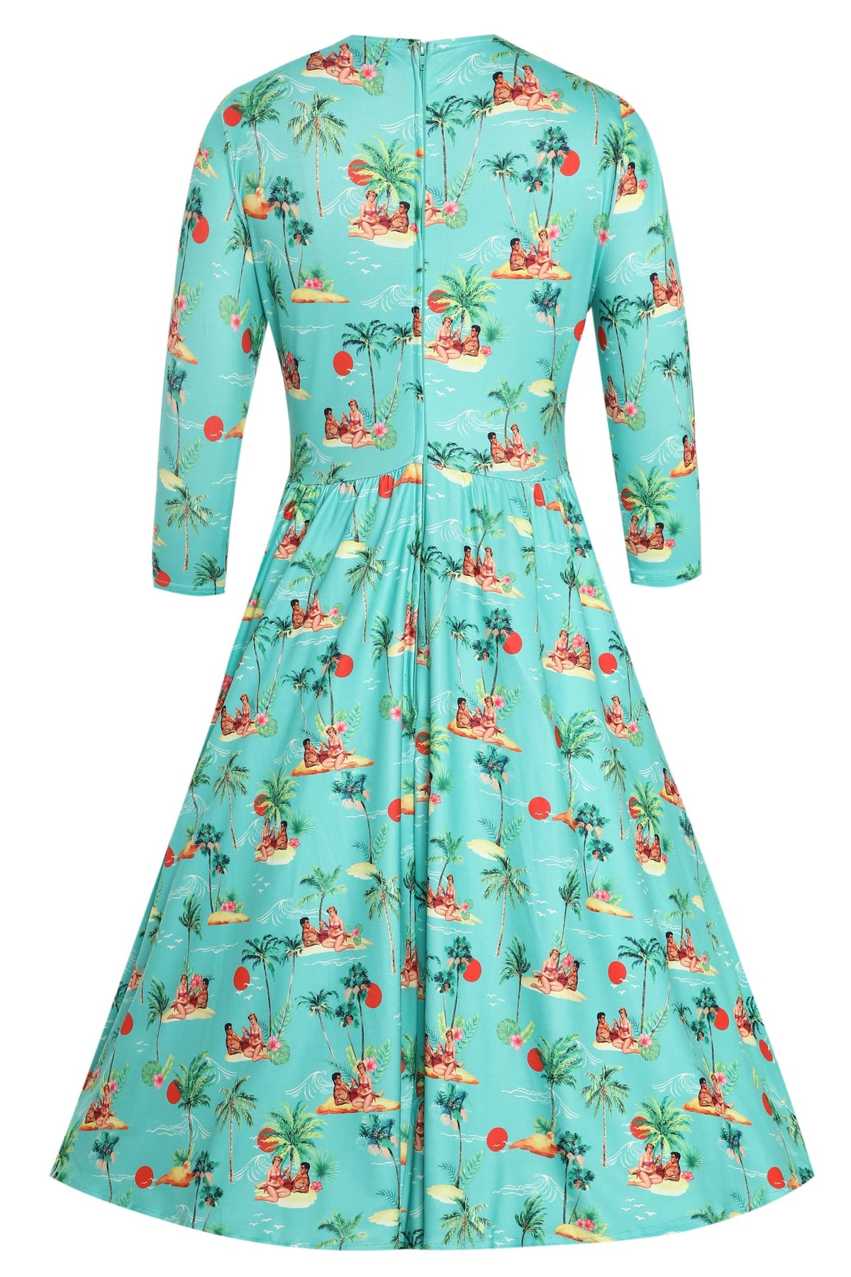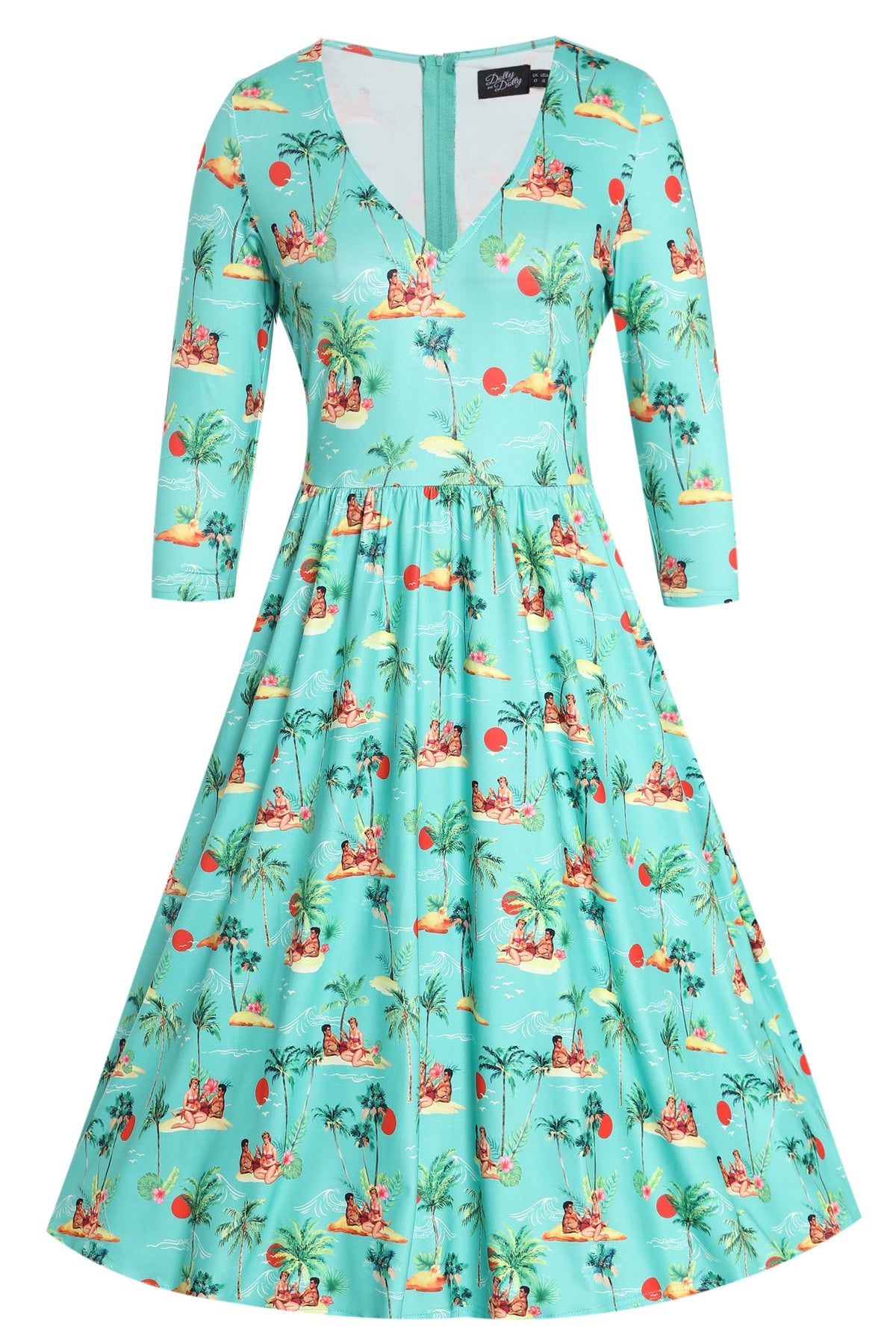 Get ready to sail into summer with the Billie dress! This charming dress is a seaside dream come true, featuring a vintage print in a shade of blue that will transport you to the sunny shores of a nautical paradise. The 3/4 sleeves provide just the right amount of coverage, while the gathered waistline accentuates your figure, creating a lovely silhouette that is both flattering and comfortable. The below-the-knee length is perfect for any occasion, striking the right balance between sophistication and practicality. The A-line, flared skirt adds movement and grace to your every step, ensuring you'll turn heads wherever you go.