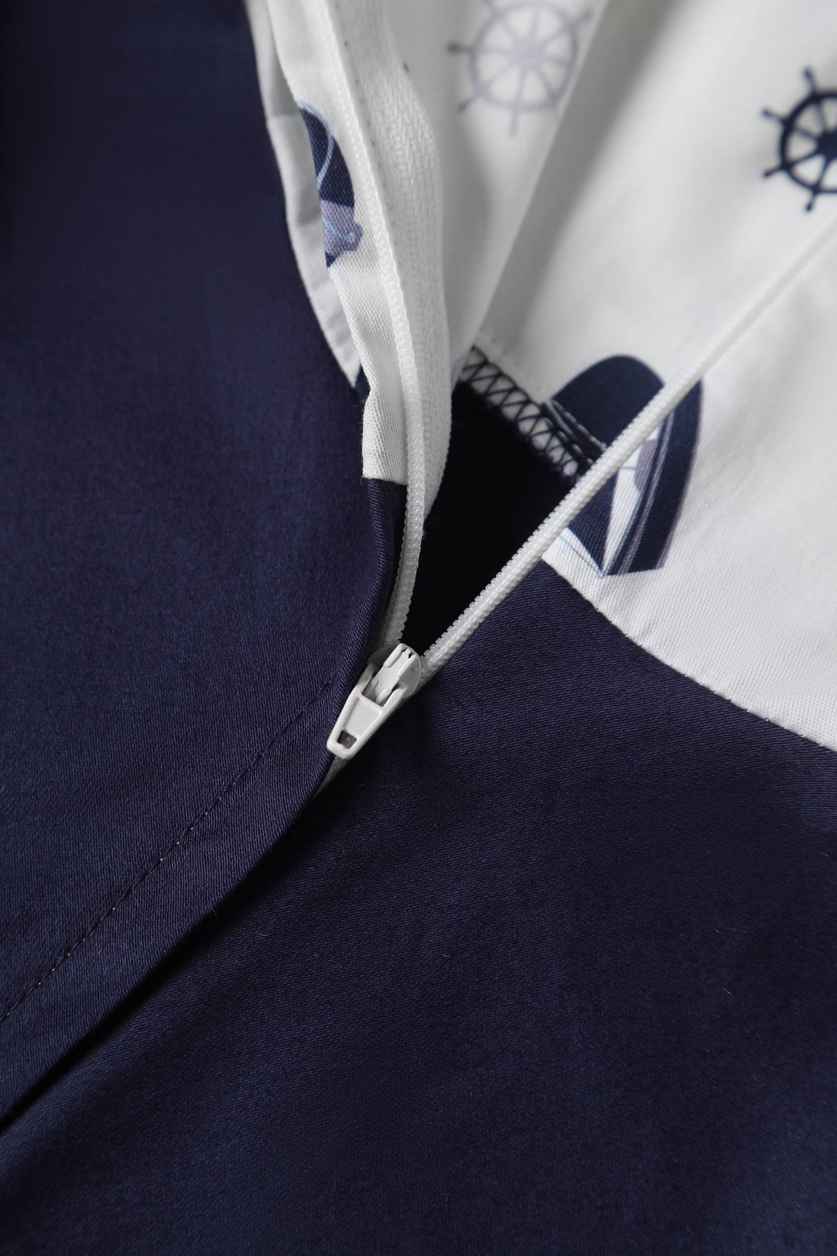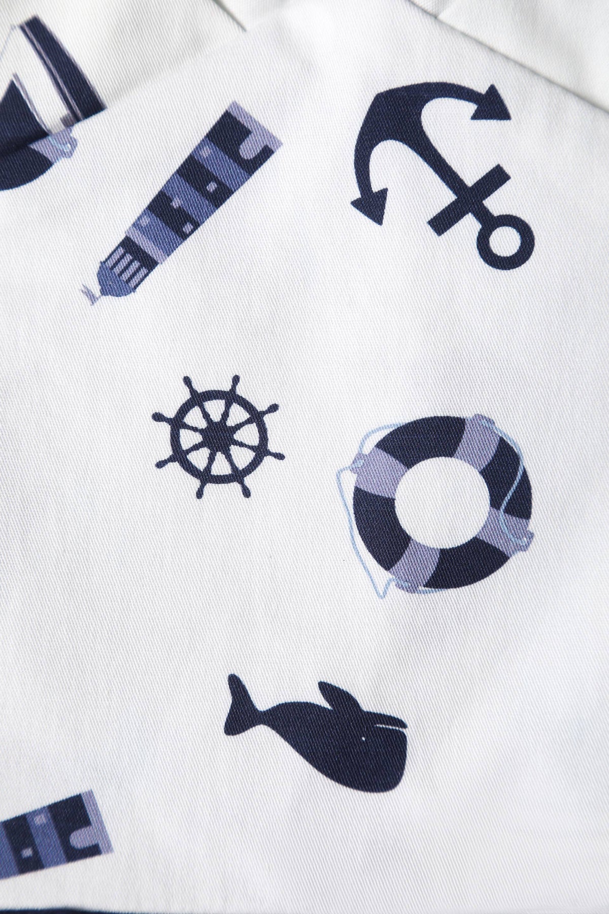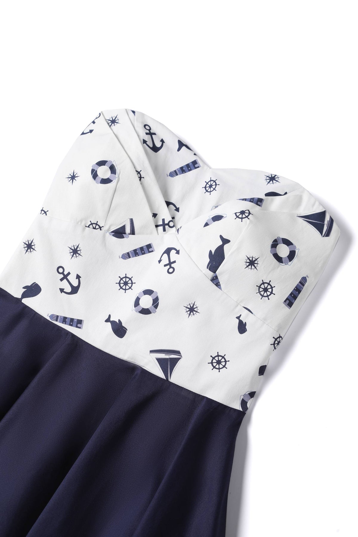 Print: White nautical print top & navy blue skirt