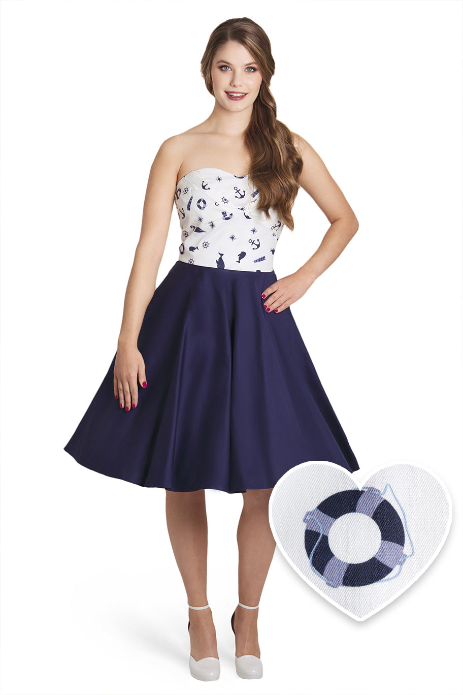 Stand out from the crowd in our Melissa strapless party dress. Featuring a cute bandeau neckline, a flattering fitted waist, a 50s circle skirt, and an adorable pleated bust. This classic cocktail dress is secured with a concealed zip and is made from soft cotton with light stretch. Perfect for a summer's day, a night out, or any formal occasion!