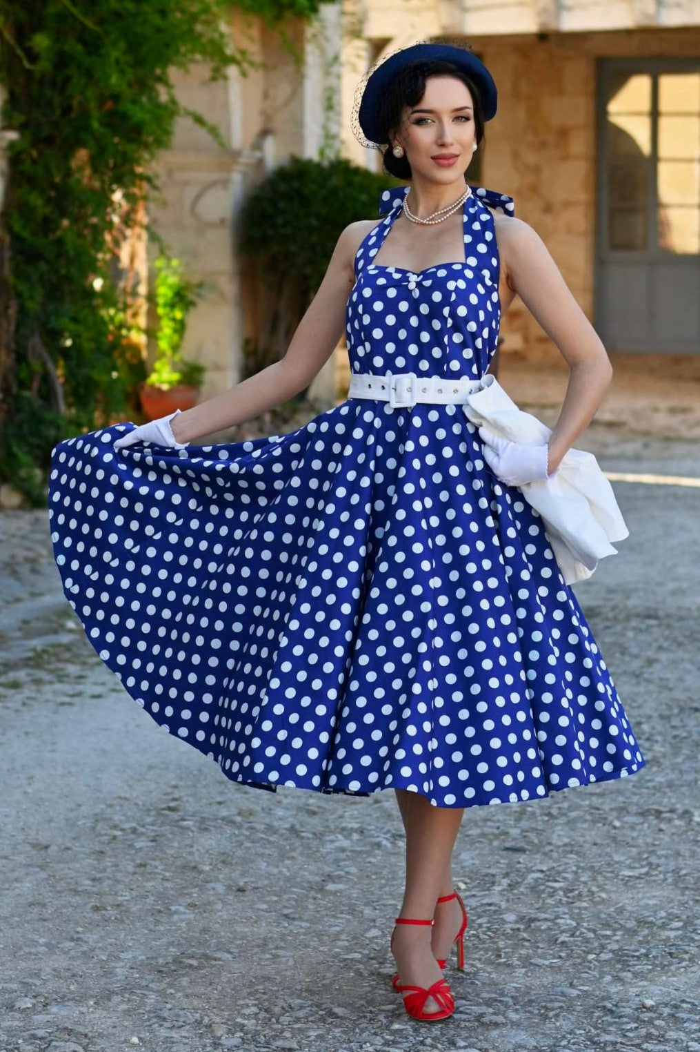 Turn heads and twirl with confidence in this timeless halter dress, designed to bring vintage charm and modern flair together effortlessly. Featuring a flattering halter neckline and a beautifully fitted bodice, this dress cinches at the waist with a belt to highlight your silhouette just right.