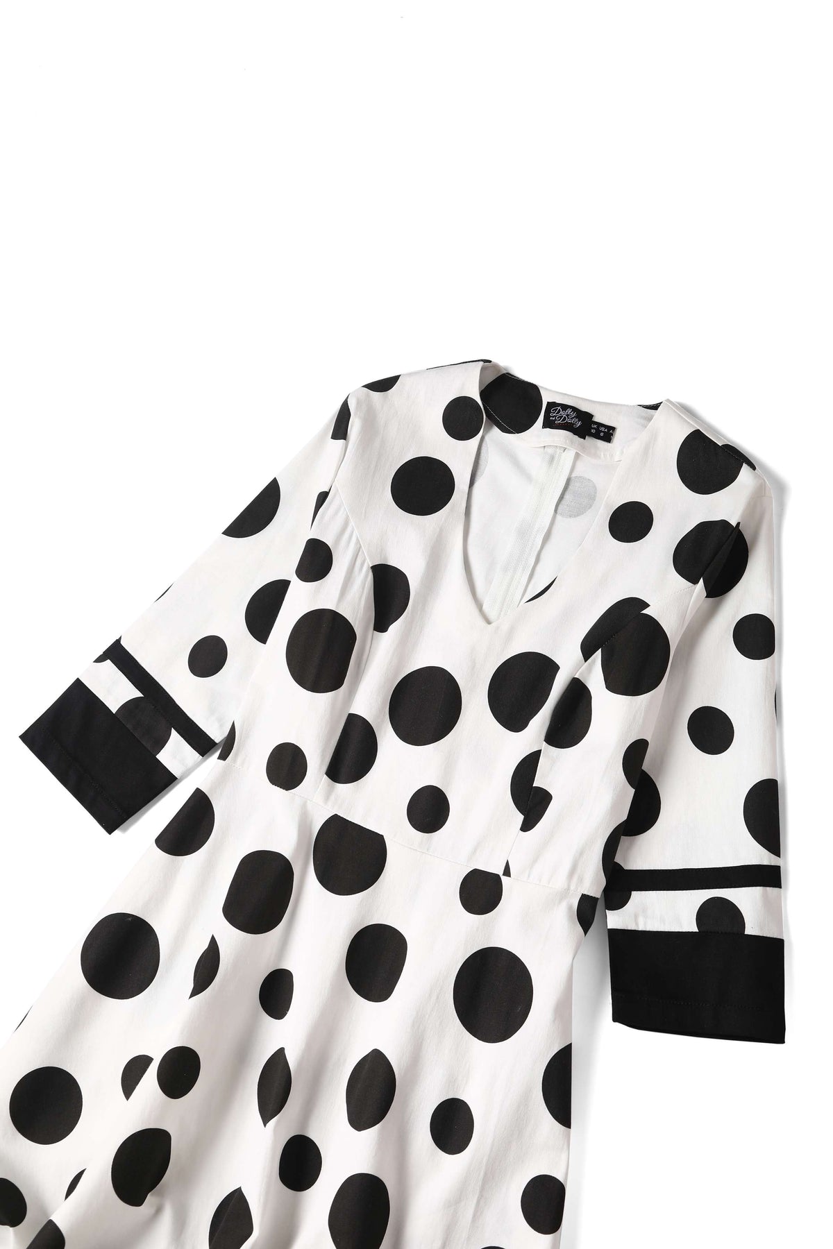 Print: White with irregular black polka dots
