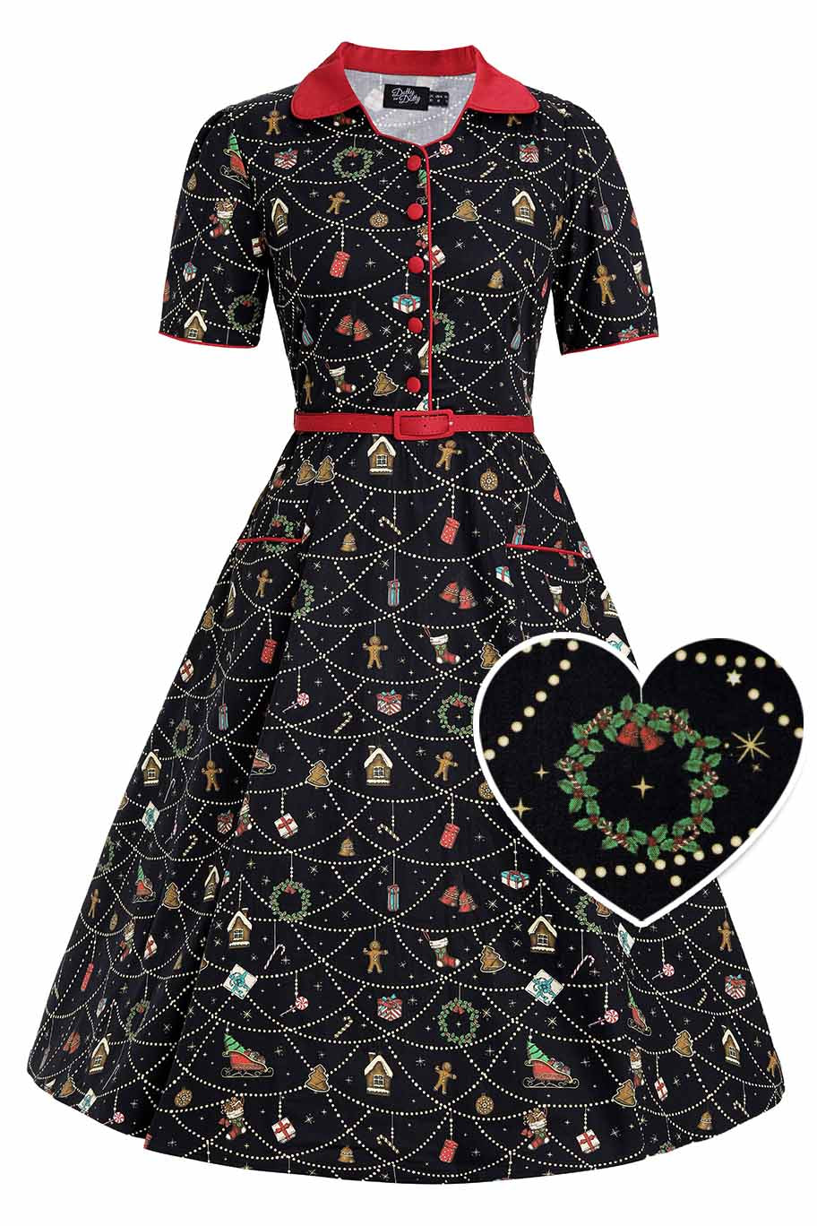 Embrace the magic of the holidays with the Mabel shirt dress. This vintage-inspired beauty is a timeless classic, it's perfect for channelling your inner bombshell during the festive season.