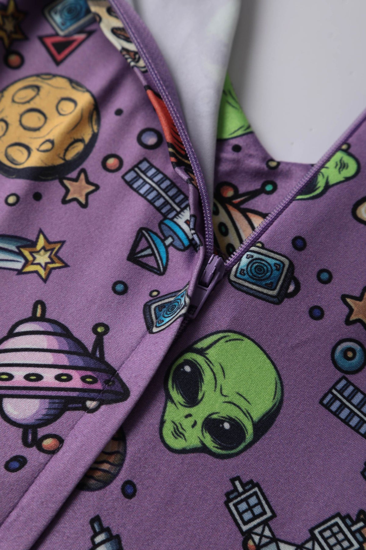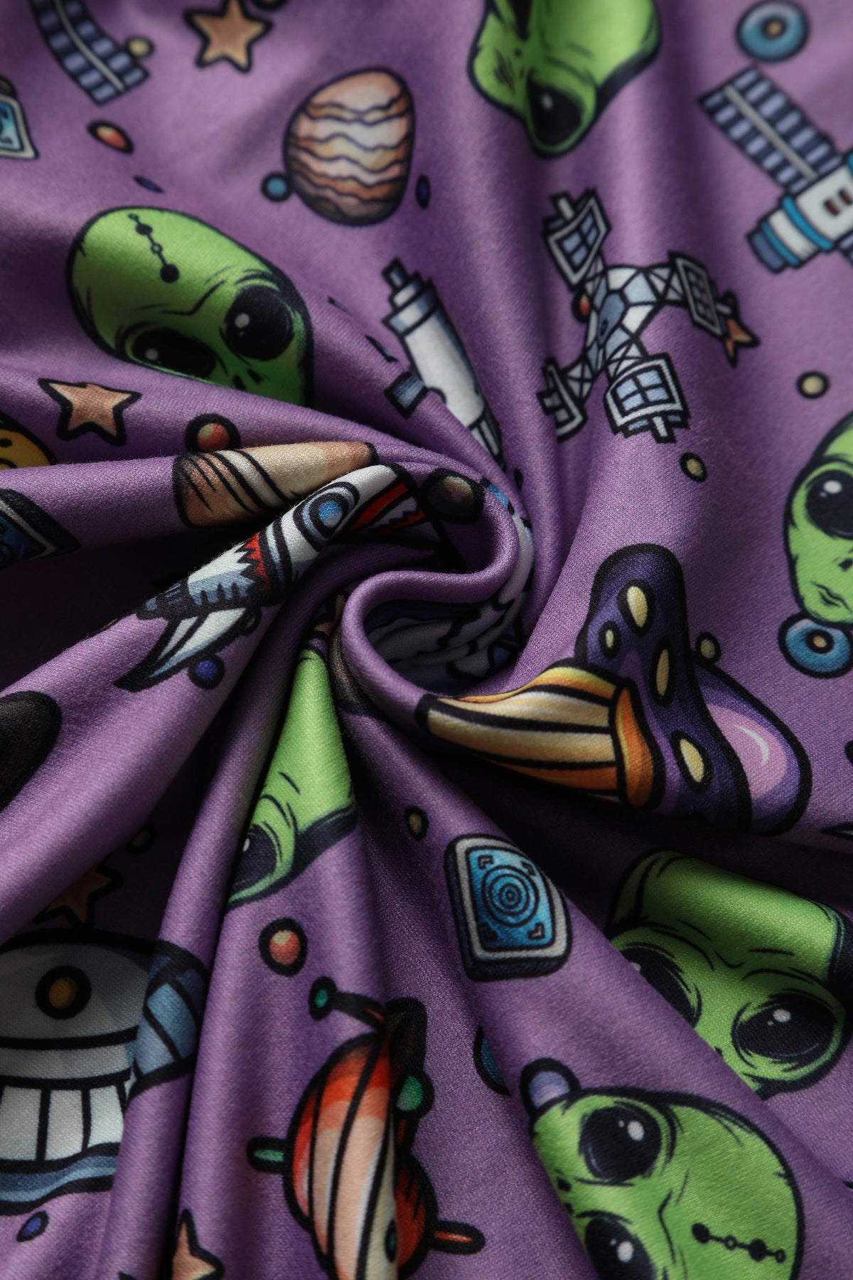 Print: UFOs & aliens on purple