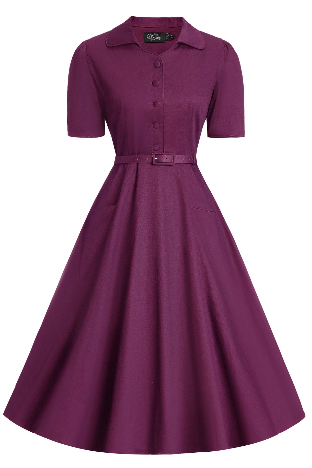 Step into the timeless elegance of the 50s with our Mabel midi shirt dress. This dress is a true classic, with its retro collared bodice, short sleeves, and a dreamy mid-calf skirt that flows beautifully. Subtle piping on the sleeves and front gives it that special 50s flair. The flattering belt defines your waist, and the concealed side zip ensures a smooth fit.