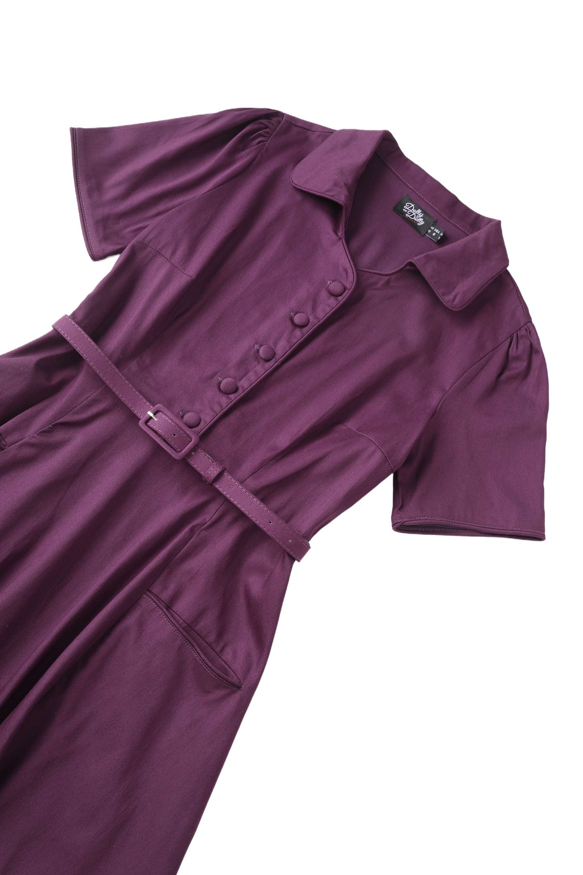 Close up view the top of Mabel Purple Midi Shirt Dress