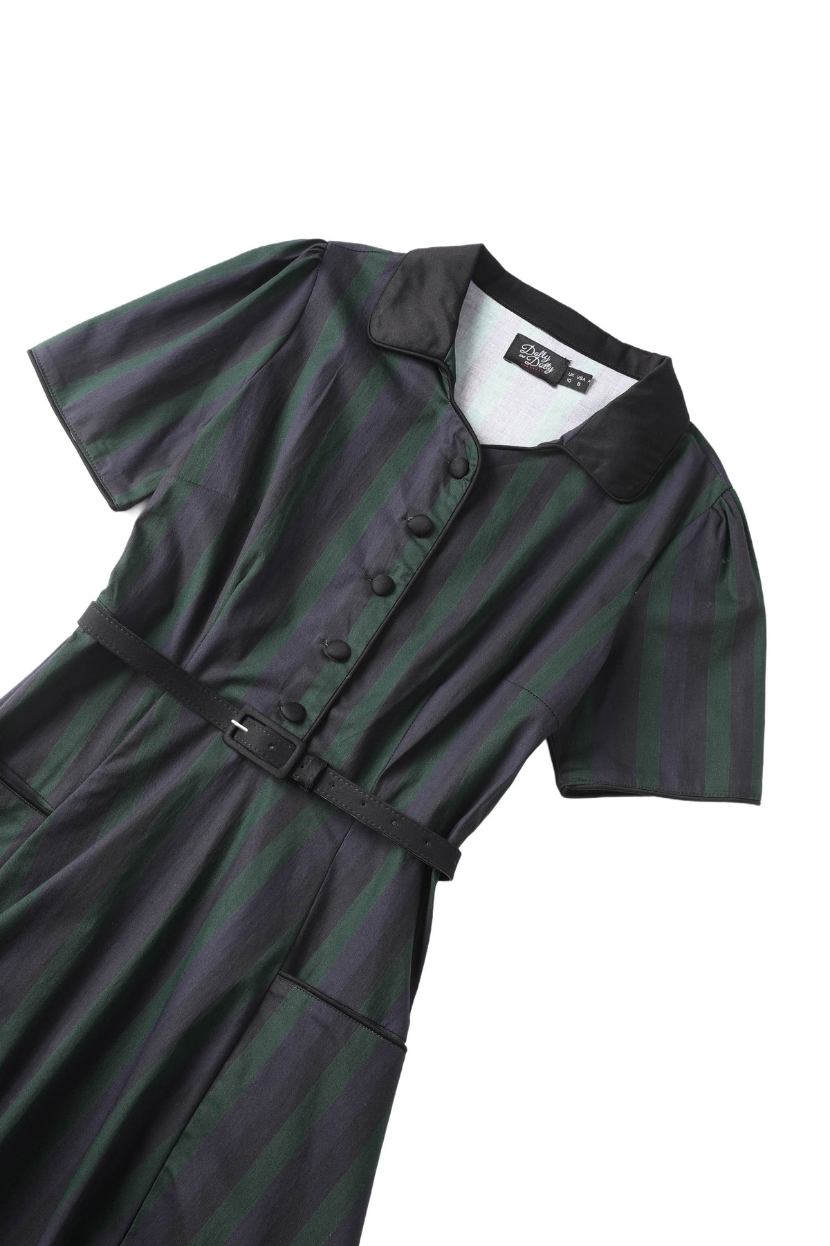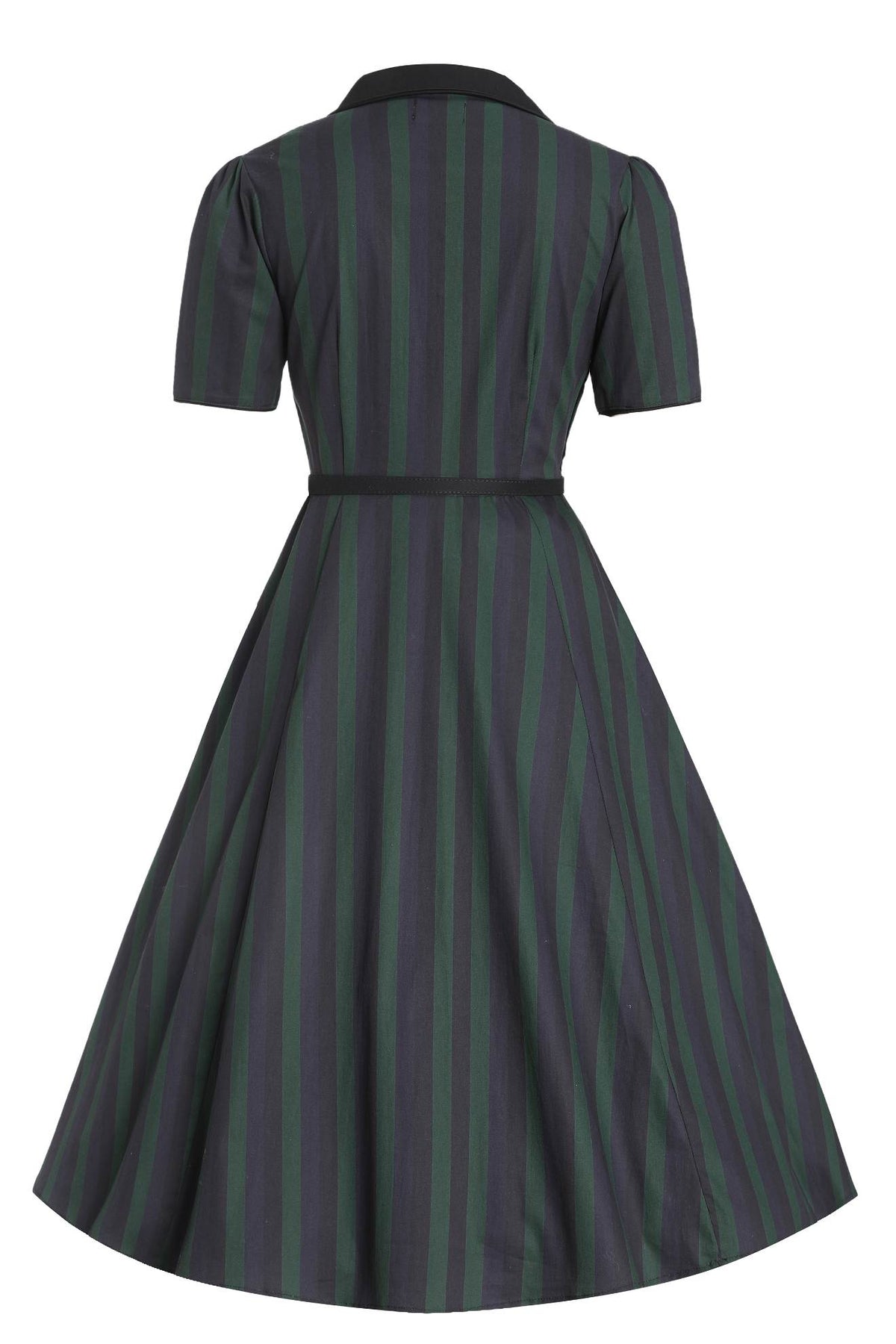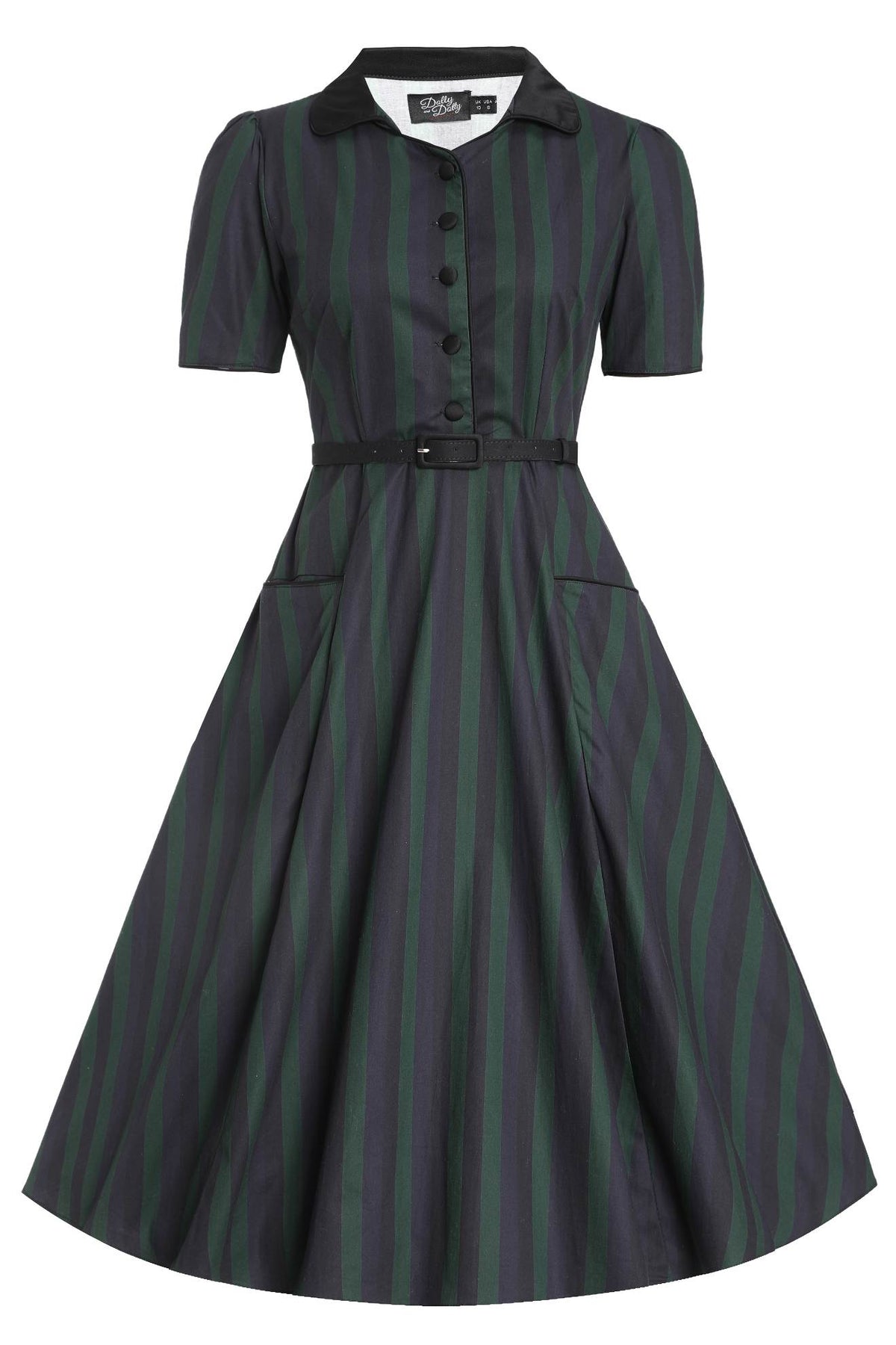 Step into the timeless elegance of the 50s with our Mabel midi shirt dress. This dress is a true classic, with its retro collared bodice, short sleeves, and a dreamy mid-calf skirt that flows beautifully. Subtle piping on the sleeves and front gives it that special 50s flair. The flattering belt defines your waist, and the concealed side zip ensures a smooth fit.