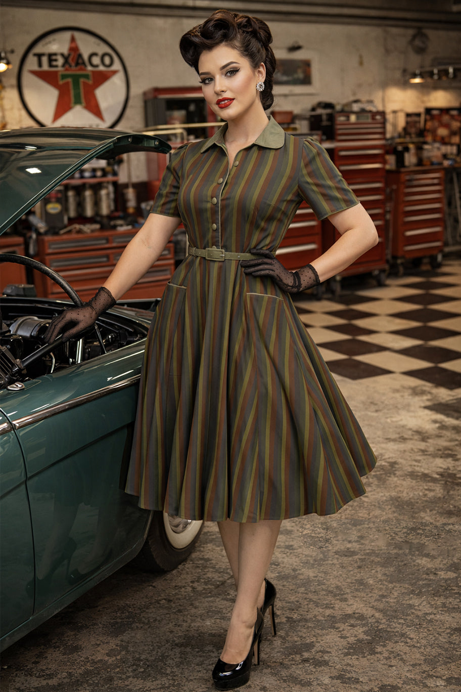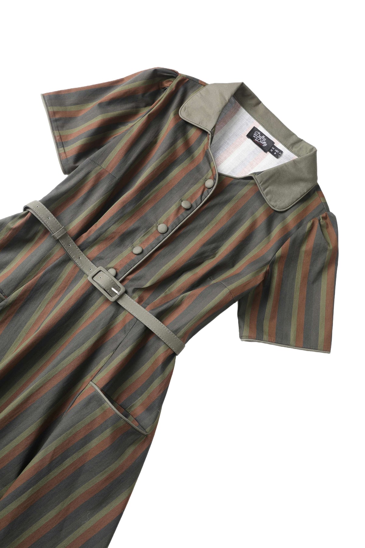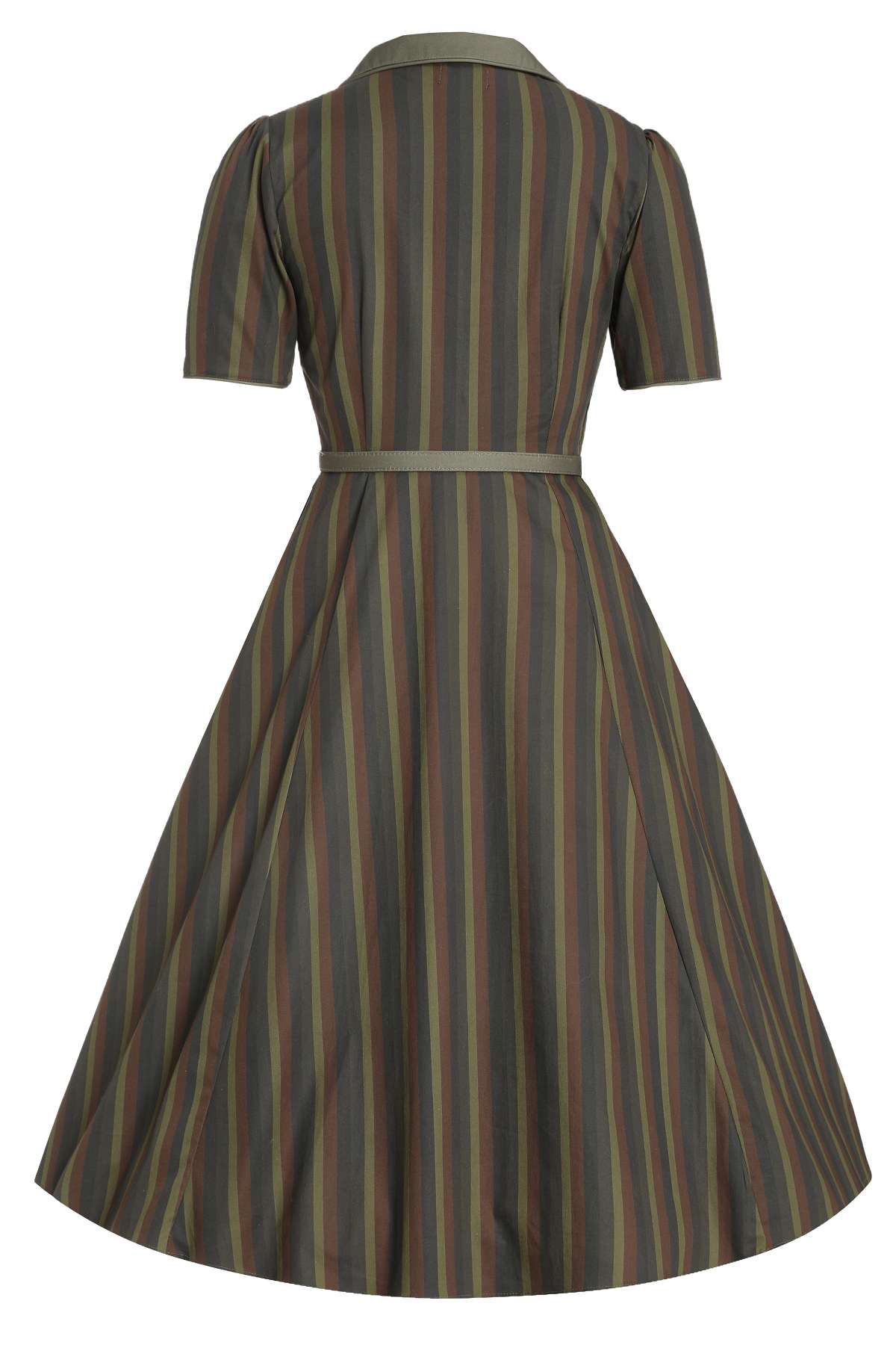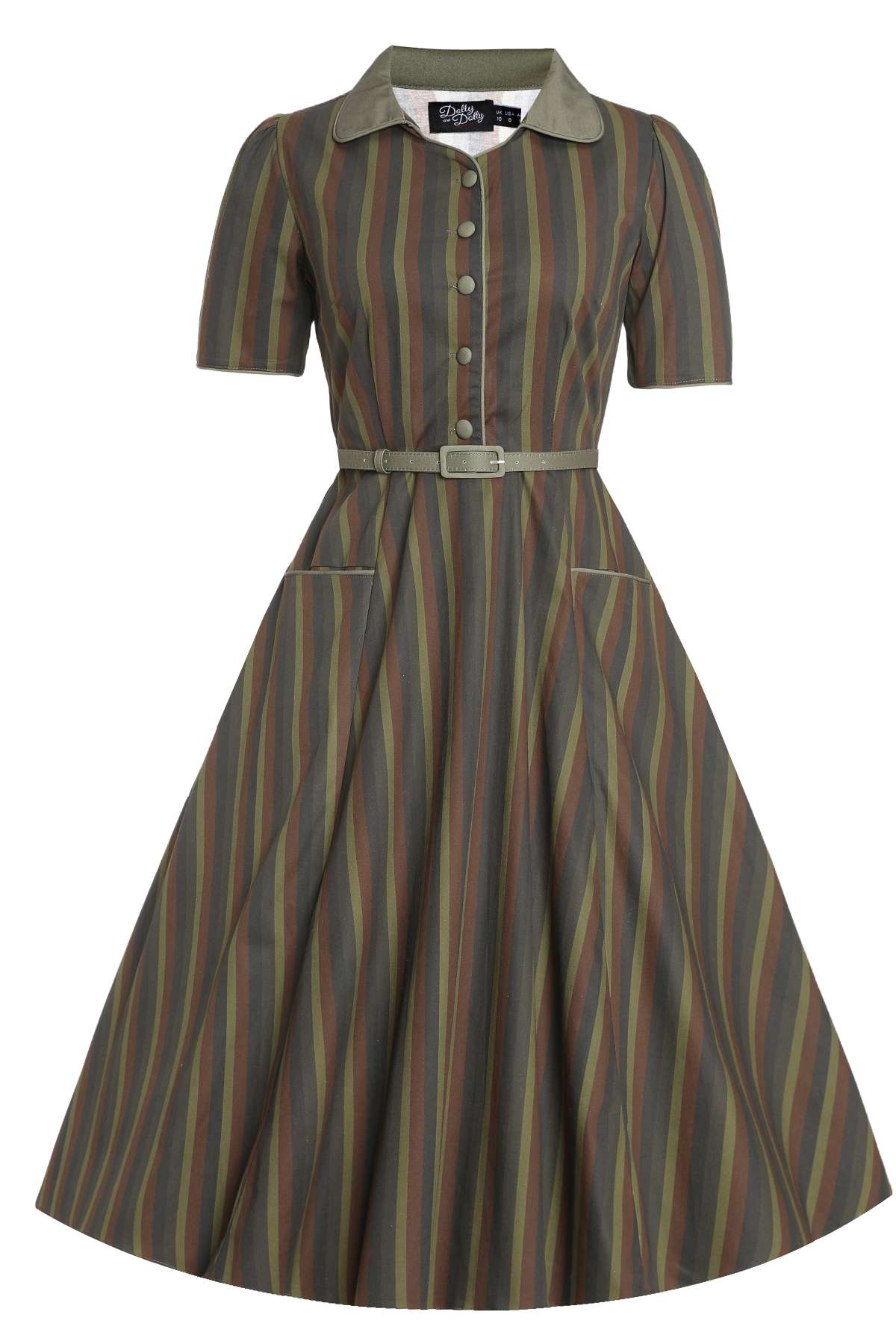 Step into the timeless elegance of the 50s with our Mabel midi shirt dress. This dress is a true classic, with its retro collared bodice, short sleeves, and a dreamy mid-calf skirt that flows beautifully. Subtle piping on the sleeves and front gives it that special 50s flair. The flattering belt defines your waist, and the concealed side zip ensures a smooth fit.