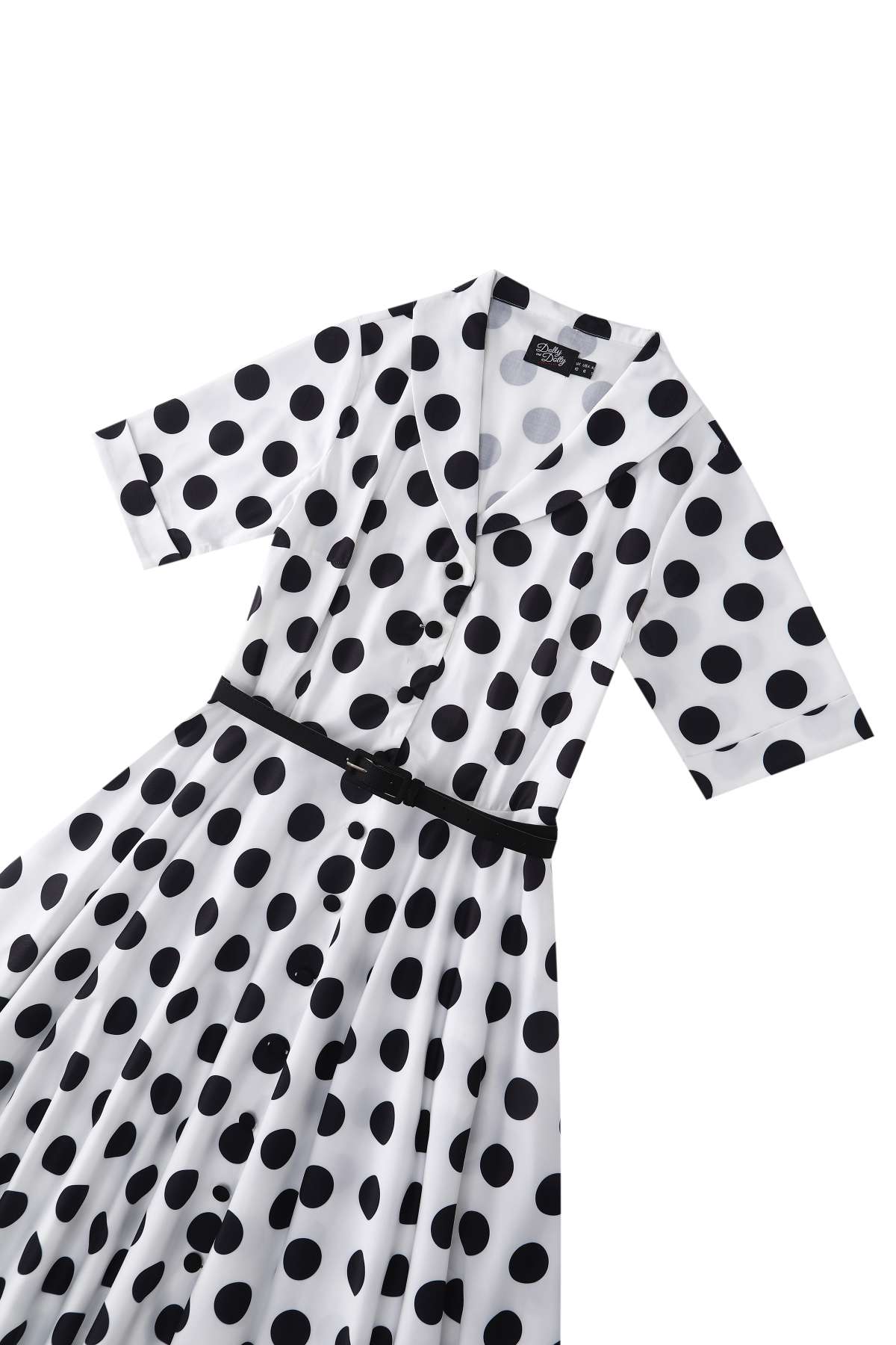 Close up view of Mollie Monochrome Full Circle Shirt Dress In Polka Dots