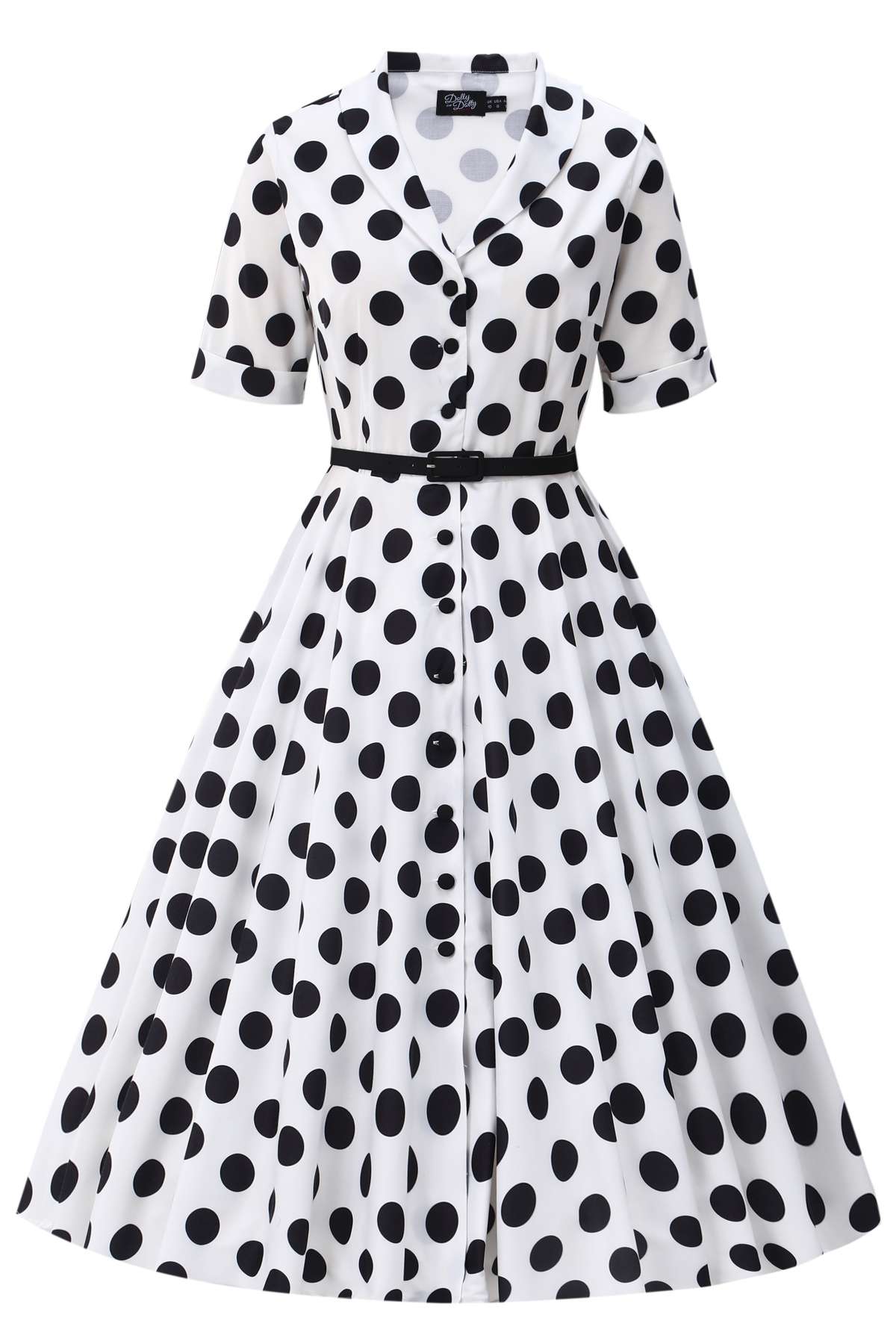 Pattern of Mollie Monochrome Full Circle Shirt Dress In Polka Dots