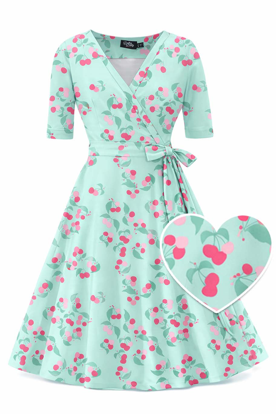 Matilda Baby Blue Cherry Wrap Dress