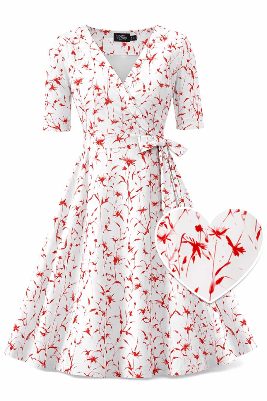 You can't go wrong with this casual, flattering, and versatile wrap dress! It has everything you need: a stylish design that's comfy to wear, hidden pockets, and elbow-length sleeves, while the print brings a little fun to your day. Matilda's cross-over bust is secured with a tie to keep you from worrying about it coming undone. It is perfect for a laid-back day, be it a night out or a day at work.