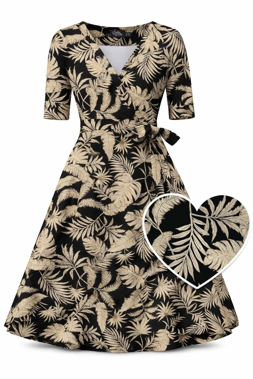 Matilda Palm Tree Wrap Dress in Navy Blue