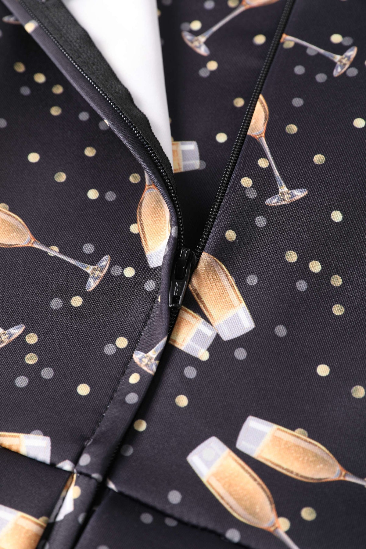 Raise a toast to style with this Amanda Champagne Print Dress! Designed with a flattering fitted bodice and a simple scoop neckline at the front and back, this dress is tailored to accentuate your curves in all the right places. The 50s swinging skirt with box pleats adds a touch of vintage charm, while the concealed zip at the back ensures a seamless fit. Oh, and did we mention—it has pockets?! Perfect for stashing your essentials while you shine.