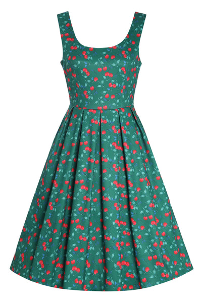 Step into a world of whimsy and fun with this Amanda dress! Designed with a flattering fitted bodice and a simple scoop neckline at the front and back, this retro-style dress is tailored to accentuate your curves in all the right places. The 50s swinging skirt with box pleats adds a touch of vintage charm, while the concealed zip at the back ensures a seamless fit. And guess what? This dress has pockets! You can now carry your essentials with ease without compromising on style.