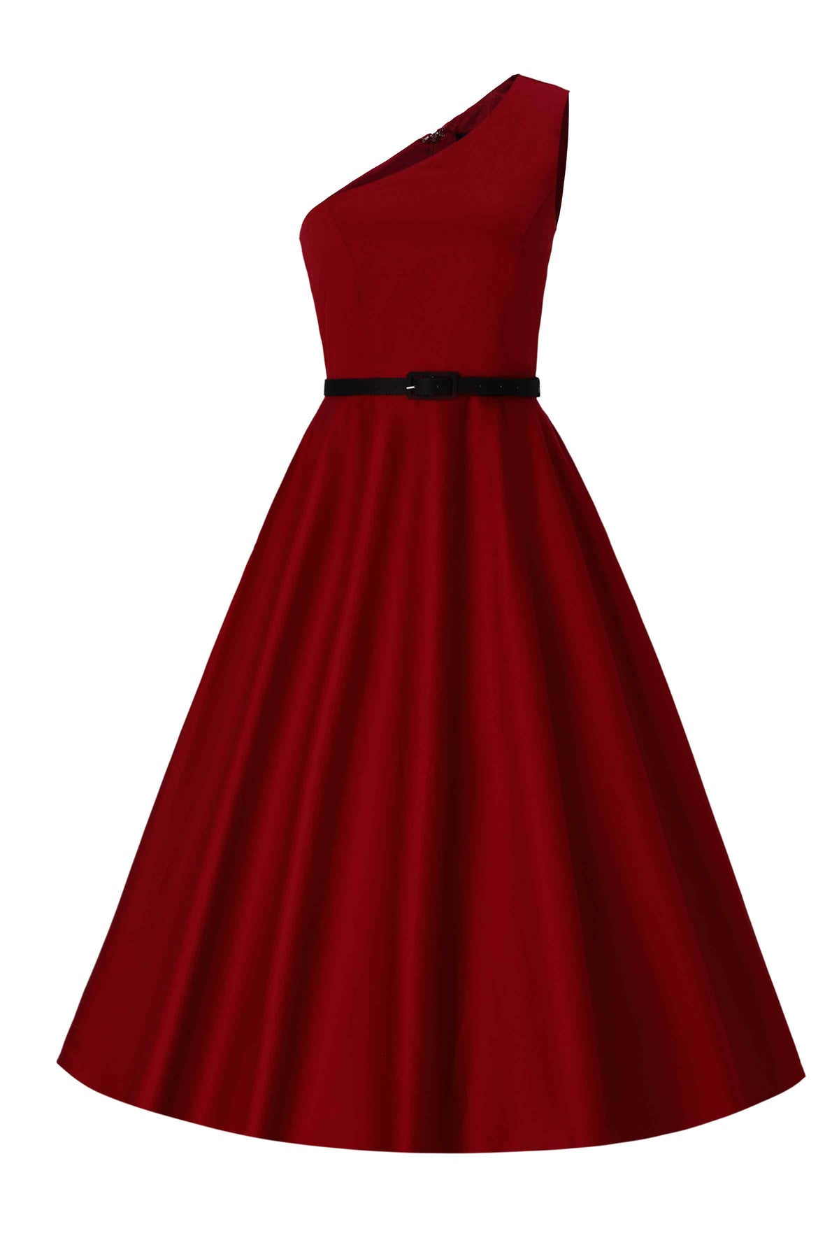 Make a statement with timeless flair in this one-shoulder swing dress. This white one-shoulder swing dress is all about effortless elegance, with a flattering A-line shape, fitted bodice, and a waist-cinching belt that ties it all together. The hidden back zipper keeps things easy, while side pockets (yes, pockets!) add a touch of everyday practicality.