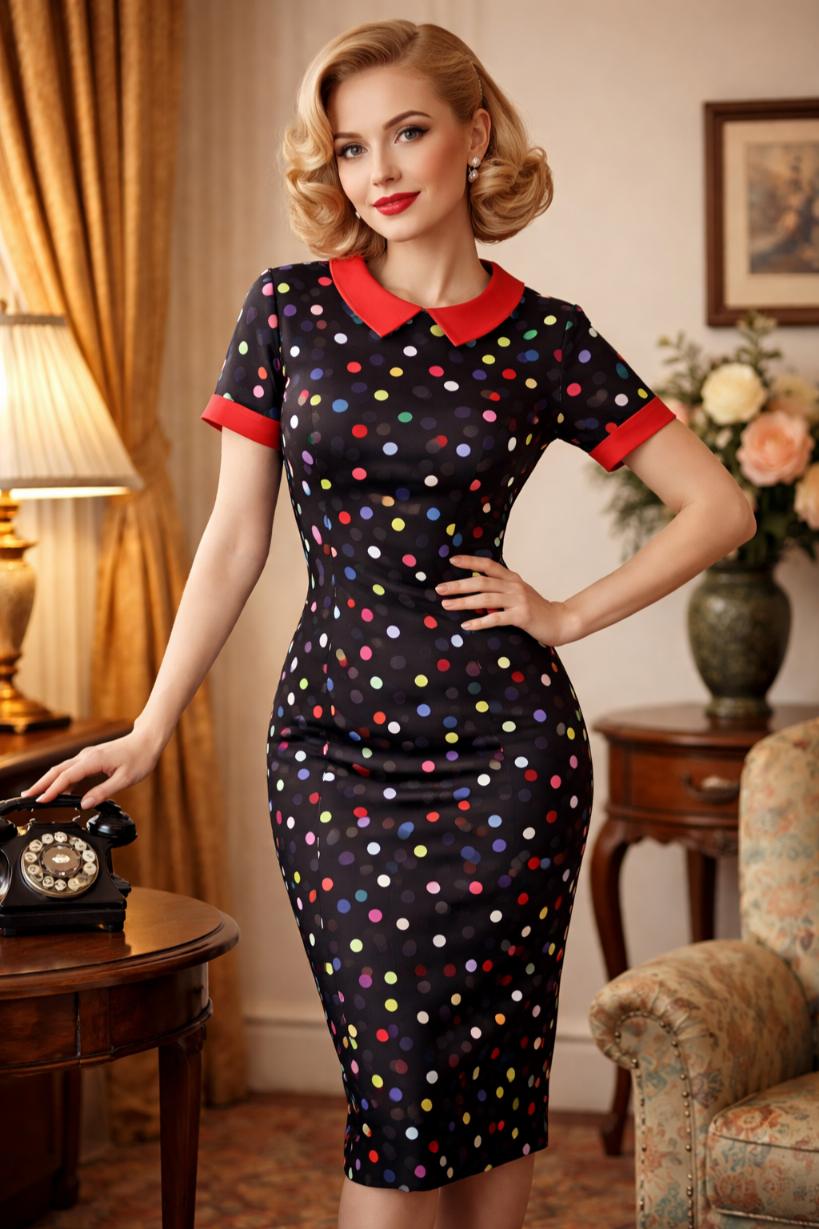 This vibrant and playful dress is a fun twist on a classic silhouette, perfect for those who love to make a statement with outfit. The collar detail adds a touch of sophistication, while the fitted silhouette flatters your figure and accentuates your curves. The dress fastens at the centre back with a concealed zip and is made from a thick, soft fabric with stretch.